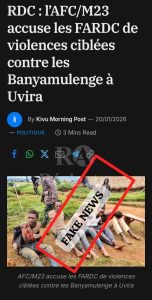 L’article de Kivu Morning Post s’appuie sur une image ancienne, sans lien avec les faits allégués, et omet les informations concordantes issues des médias locaux faisant état d’une protection des familles Banyamulenge par les FARDC.