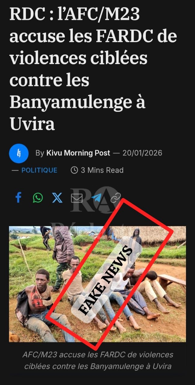 Cette publication est donc trompeuse et s’inscrit dans une narration déjà observée dans l’espace numérique, visant à justifier la présence du M23 et de ses soutiens en présentant l’État congolais comme persécuteur d’une communauté spécifique, sans fondement factuel vérifié.